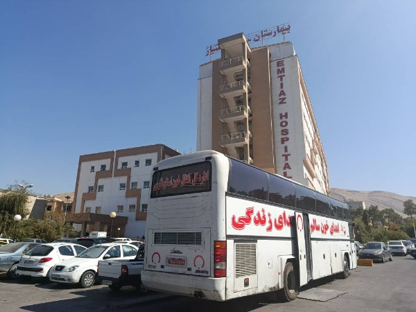 استقرار اتوبوس سیار سازمان انتقال خون در بیمارستان امتیاز و فوریت های جراحی شهید رجایی ..